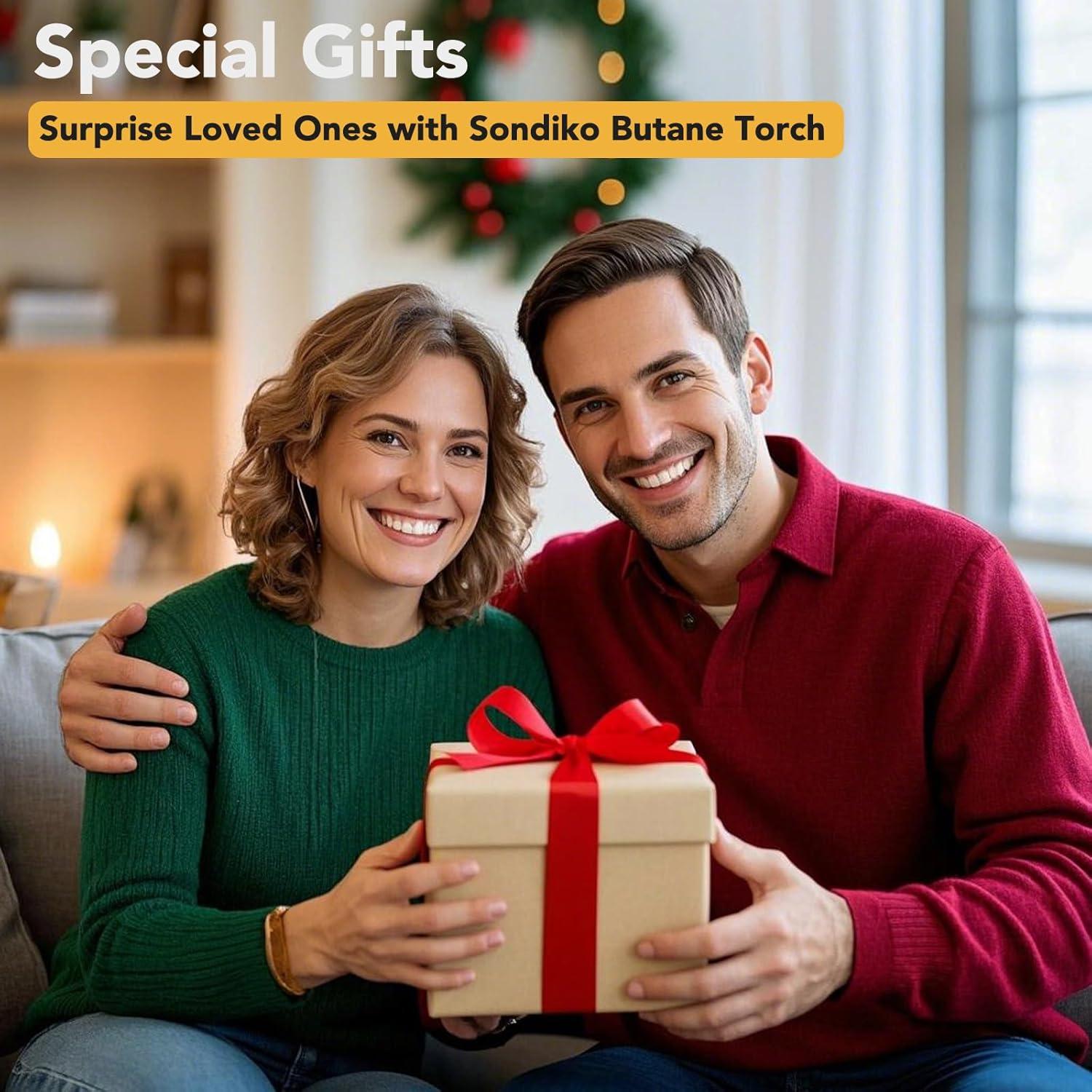 【Fit ALL Small Butane Tanks】Do not know what butane gas tank to buy? Or have no idea whether the butane canister at home does not fit our torch? Don’t worry, Sondiko cooking torch fits any brand of small butane gas with whether long nozzle or short nozzle! For butane tank with long nozzle, refill the torch directly; for gas tank with short nozzle, add the red adapter included in the box to lengthen the nozzle, then refill the torch.