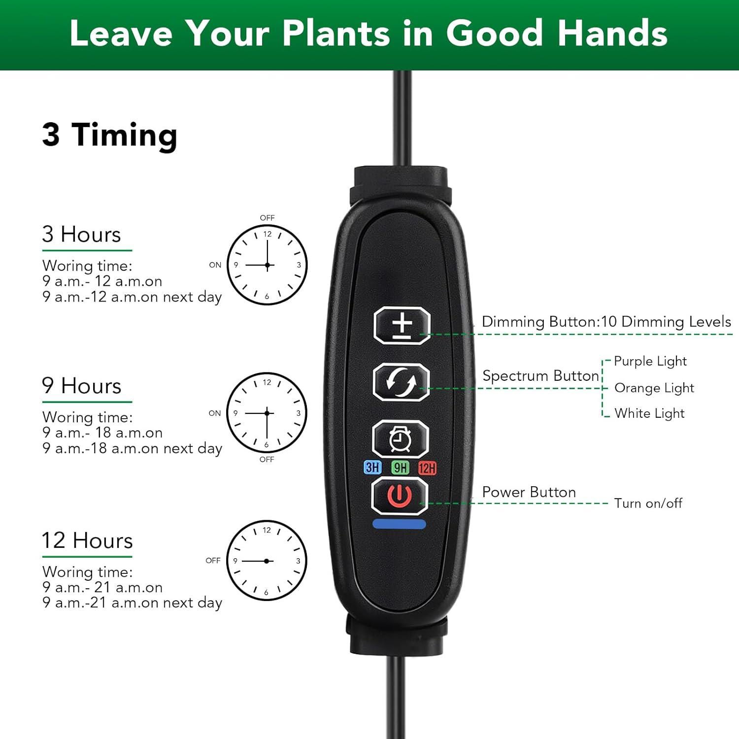 Upgraded Cycle Timing – If you are looking for a plant grow lamp which is great and easy to use, look no further! This is the latest timing function grow lamp. The Cycle TIMER rather than ONE-WAY TIMER on the market. User can set it up for lighting 3H/9H/12H, it will auto turn on after 21H/15H/12H. Never worry about your plants when you are on vacation or away for.