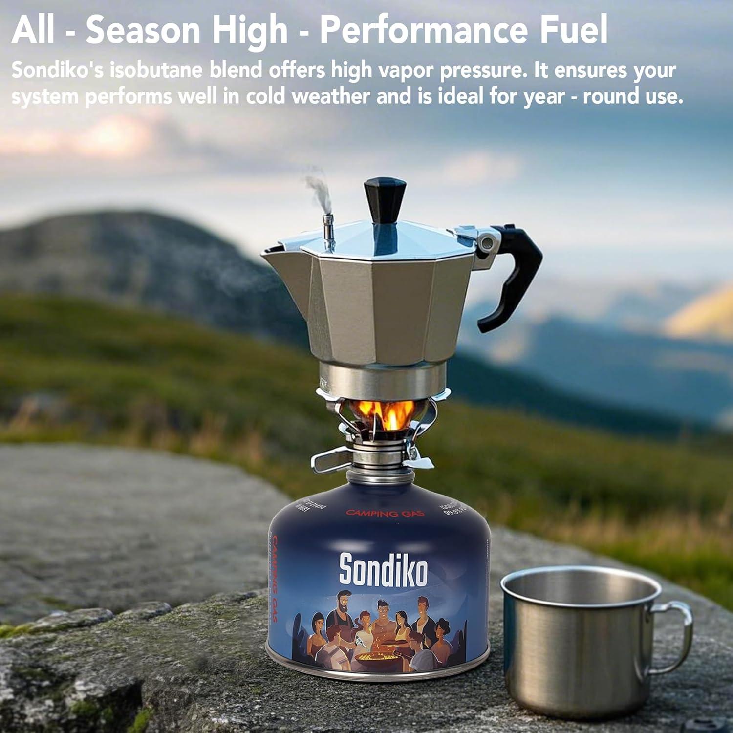 ALL SEASON FUEL: Sondiko's high-performance propane/isobutane 4-season fuel delivers high vapor pressure, improving your system's performance in cold weather.