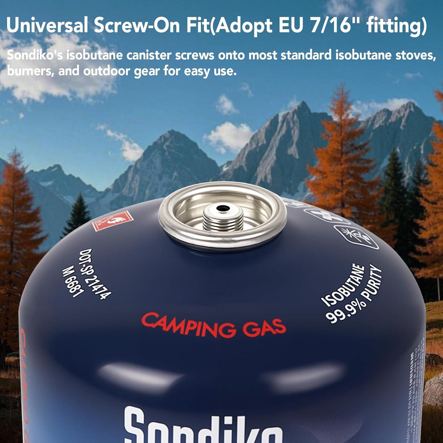 SCREW-ON UNIVERSAL FITTING – Built with a screw-on style fitting, Sondiko’s Isobutane canister fits with a large variety of standardized isobutane stoves, burners, and other outdoor equipment.