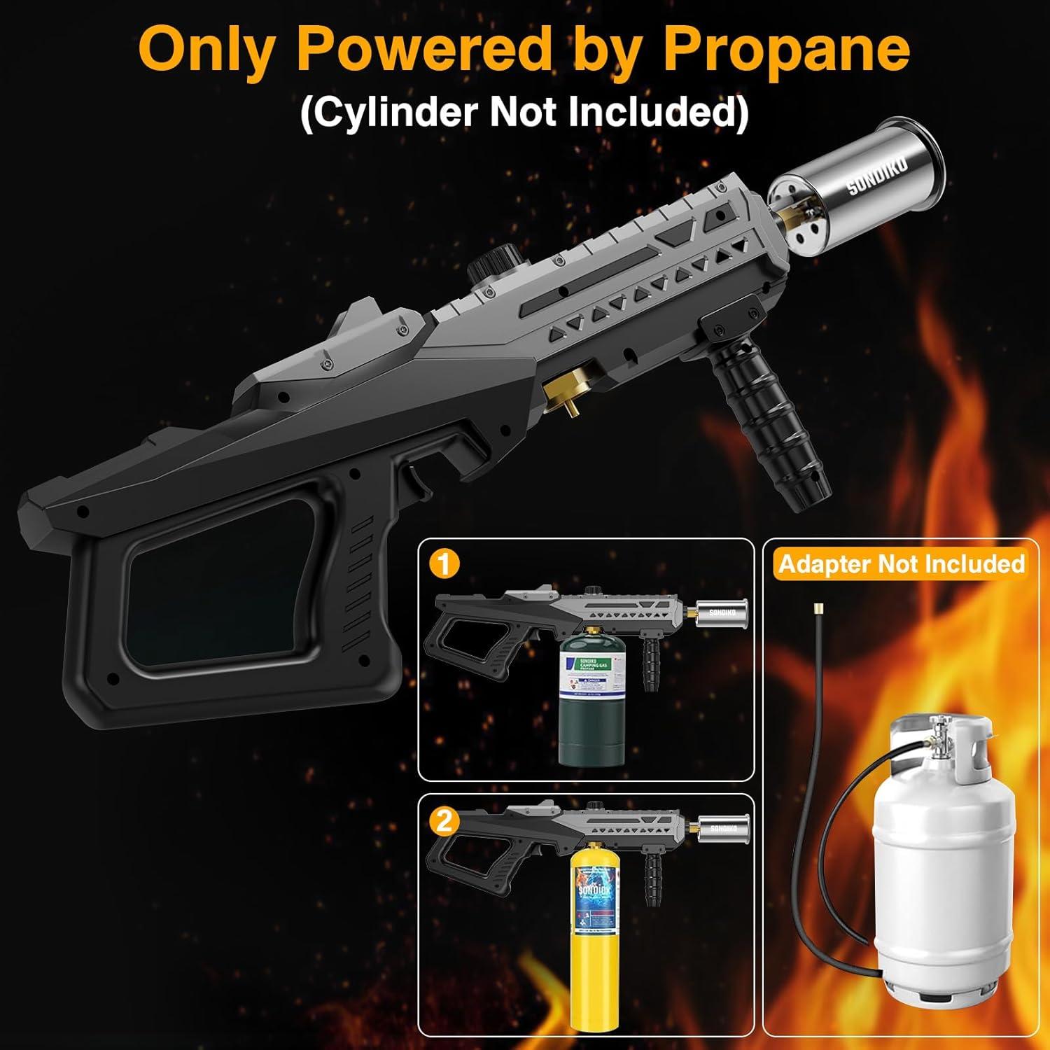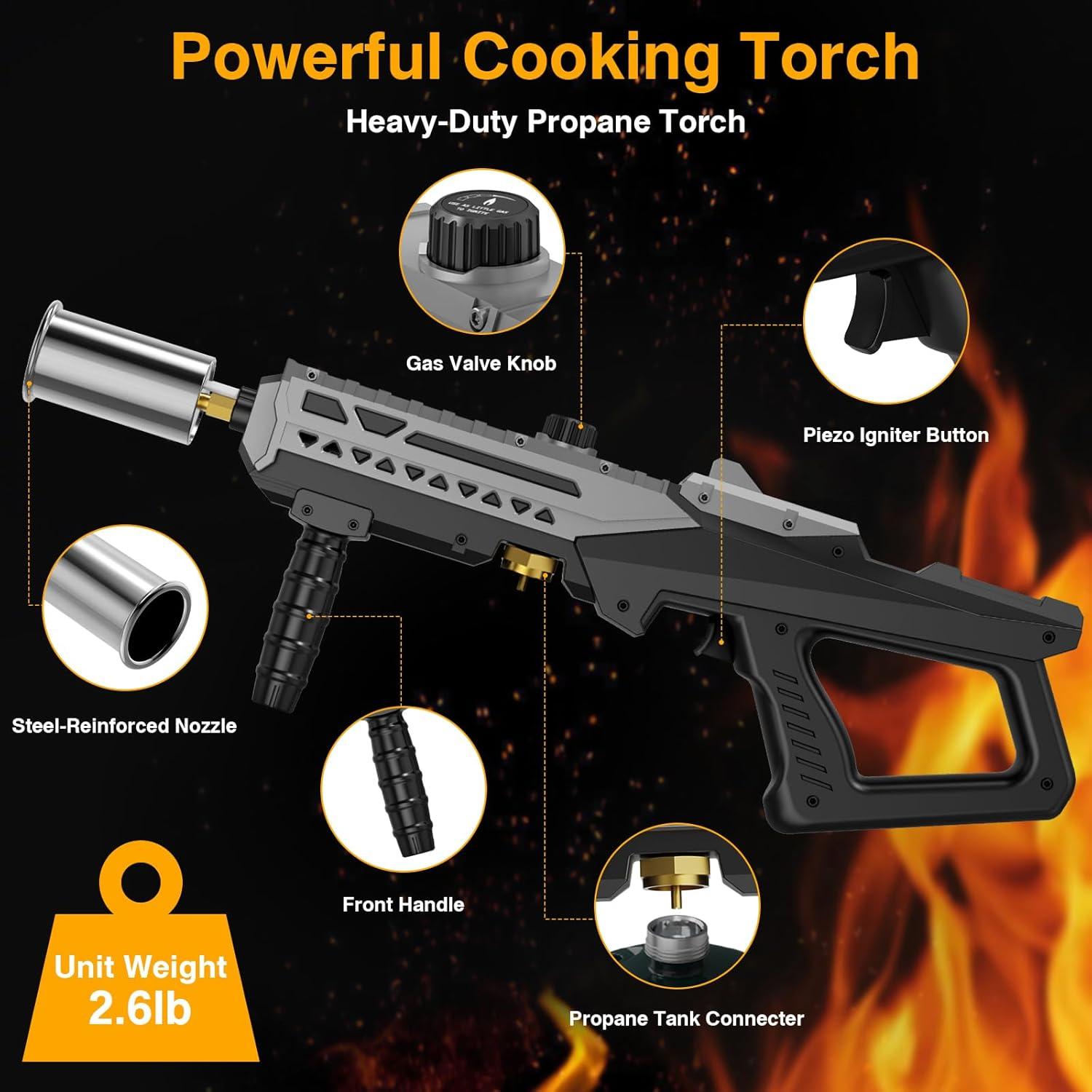 Sondiko Powerful Cooking Propane Torch Gun, Culinary Torch Campfire Starter, Adjustable Weed Torch Burner for Searing Steak, BBQ, Welding (Gray & Black) Propane Tank Not Included(Gray & Black)
